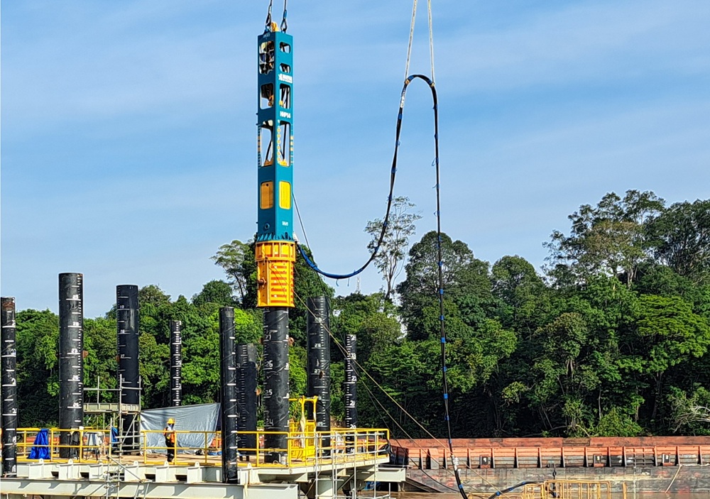 The vibratory hammers are used to drive sheet piles, pipes or other elements into the soil by vertical vibrations which 'loosen' the soil. The vibrated elements are then driven into the soil using the dynamic weight of the hammer. The loosened soil condition created by vibration is also effective for extracting sheet piles, pipes or other elements from the soil.